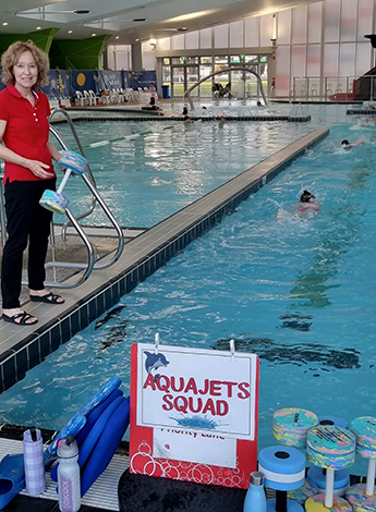Carole led the Aquajets Swim and Exercise Squad as the swimming coach, with an interest in water for therapy.