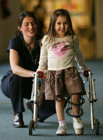 With her new-found experiences under her belt, Cate and her partner Gus decided to grab their passports and head overseas on working visas. The couple moved to London in 2002 and Cate soon found herself at the Portland Hospital for Women and Children after a brief stint at the Royal Hospital for Neuro-disability in Putney. The Portland, a private hospital, offered Cate new clinical opportunities. During her almost two years there, she treated children after spinal surgery, orthopaedic surgery and with neurological disability. Her patients included embassy-sponsored families from the Middle East, arriving in the UK for surgery and rehabilitation. That she was part of a strong multidisciplinary team in a collegiate environment with consultants and clinicians left a lasting memory on Cate.