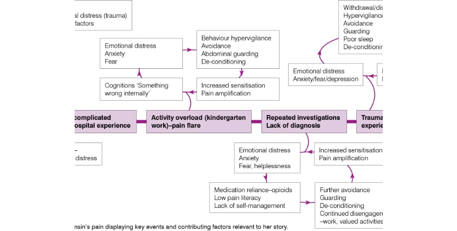 Tamsin’s pain and emotional distress were entwined with other contributing factors, including the belief that she had something wrong internally, low levels of pain literacy, and a high sensitivity suggesting nociplastic pain and central sensitisation.