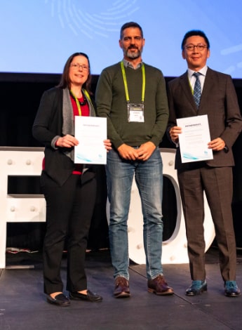 Two Journal of Physiotherapy awards were then presented. The reader’s choice award went to Freddy Lam for the systematic review on whether physical exercise improves strength, balance, mobility, and endurance in people with cognitive impairment and dementia. The paper of the year was awarded to Zoe Mckeough, APAM, for her cohort study of sedentary behaviour and health outcomes in people with COPD.