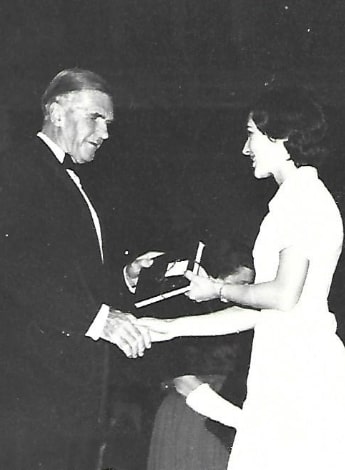 Barbie Dorsch receives the Orthopaedics Prize from Sir Lorimer Dods at her graduation in 1963. Photo supplied.
