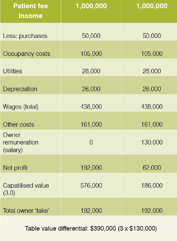 By not deducting a cost for all ‘human’ inputs into the practice the outcome can be one of false security as shown by the example for an identical practice (see Table).
