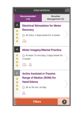 This app is designed to help clinicians decide on the best evidence-based rehabilitation treatments for stroke patients with upper limb impairments. It is a great adjunct tool particularly for those who may be time poor, struggling to recall established therapies, or require further ideas to create a specific treatment plan for their patients.