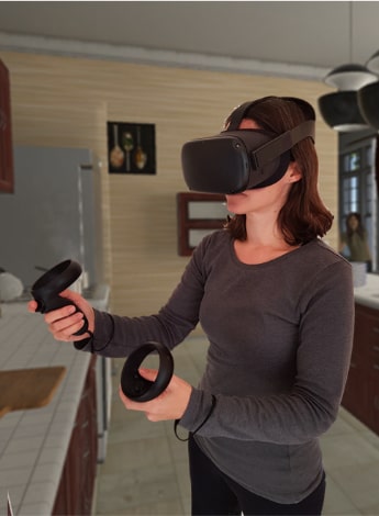 ‘In this virtual kitchen, you put on the headset and you can interact with any of the objects in the kitchen.
